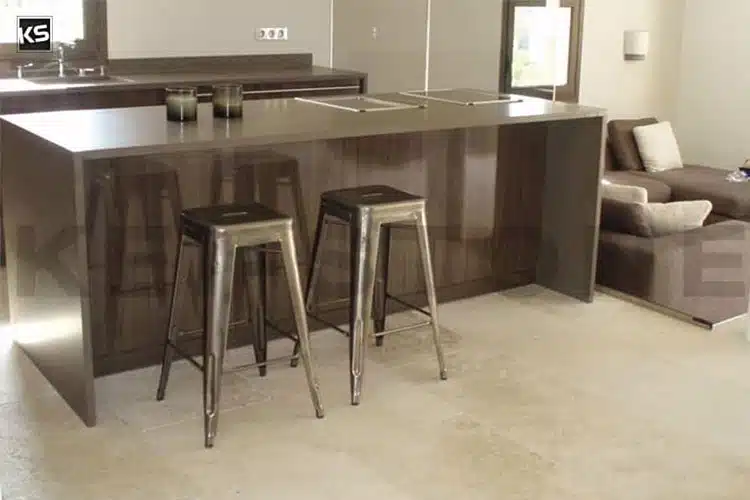 Dans la salle de bain, la pierre naturelle habille sols, murs et douche, créant une ambiance raffinée et intemporelle. Non poreuse et ultra-résistante, elle est aussi idéale en cuisine, supportant les projections, la chaleur et l’humidité sans s’abîmer ni se rayer facilement.